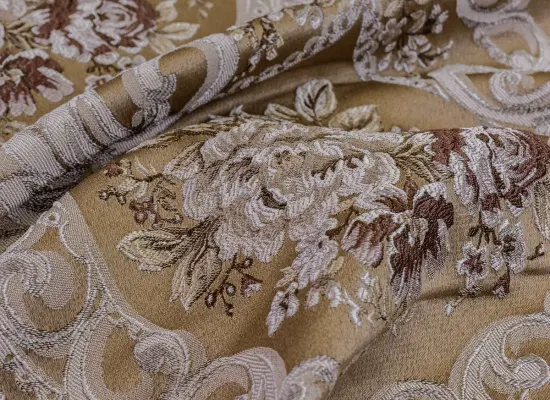 Орнамент в коллекции сохраняет колорит прошлого, а цветовая палитра представлена пятью природными оттенками. Ткань состоит из сложных переплетений нити и поэтому можно долго рассматривать рельефный узор вблизи. Особенность перекручивания волокон создает узнаваемую фактуру ткани, прочную и стойкую на разрыв, получая при этом поверхность нежную как шелк. Особого ухода не требуется, материал очень неприхотливый за счет своей плотности, что делает его идеальным вариантом для обивки мебели. Практически не впитывает грязь, можно применять обычную сухую чистку пылесосом. Жаккард гипоаллергенный и за счет мягкости не вызывает раздражения на коже.